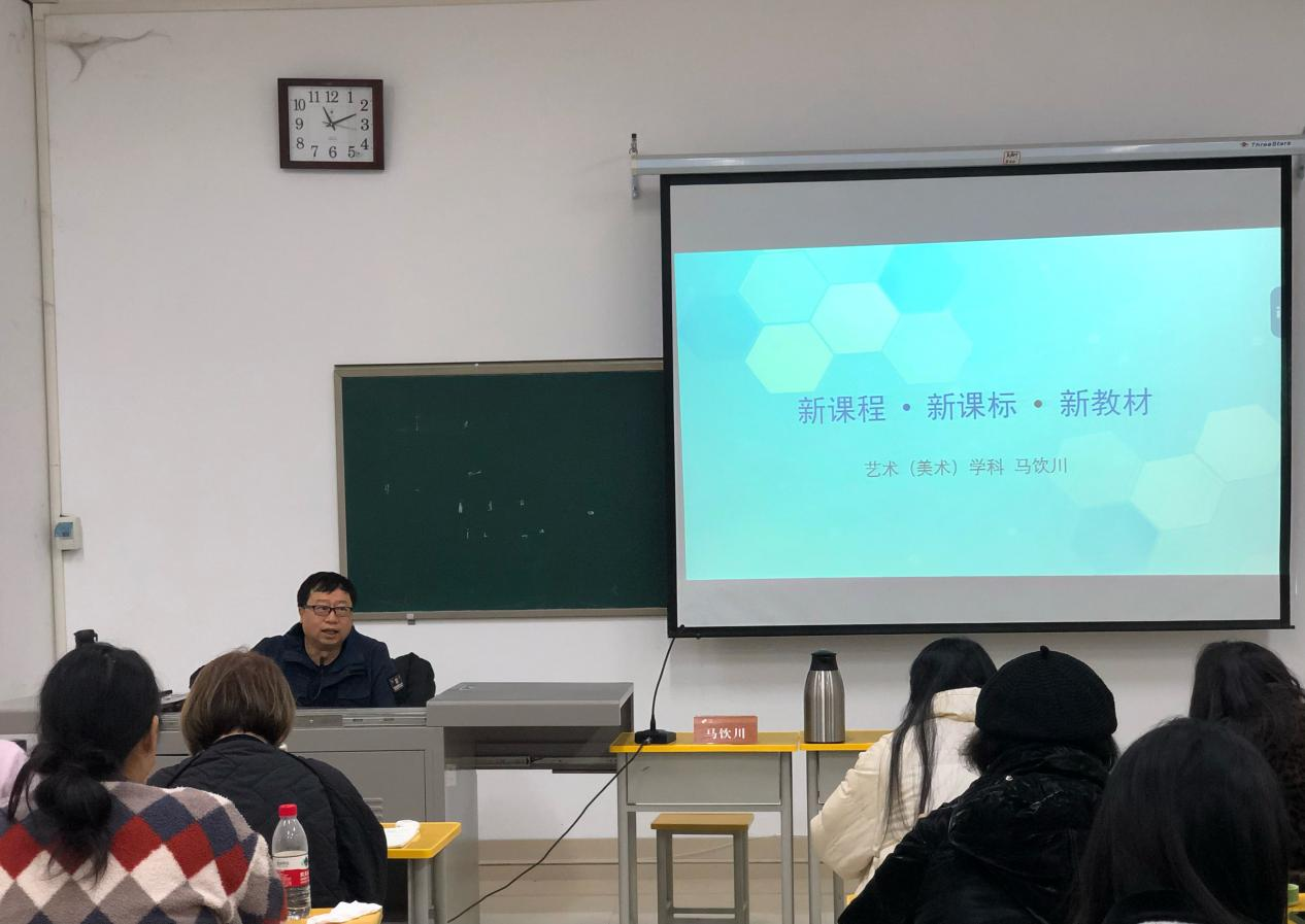 为帮助教师更好地理解和应用教学资源,提高教学质量,11月30日上午,我院于国培实践教室B402开展“新课标、新课程、新教材”专题讲座,本次讲座由河南省教育厅美术书法教研室中小学高级教师马饮川主讲,全体学员参加。