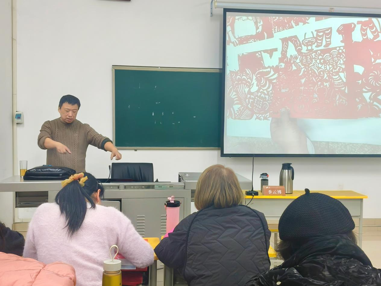 为提高学员们对剪纸的应用与实际教学的理解,并在教学过程中融入地方特色,11月30日下午,我院于国培教室B402开展“剪纸设计与教学”主题培训。此次培训由我院副教授季云博主讲,全体学员参加。