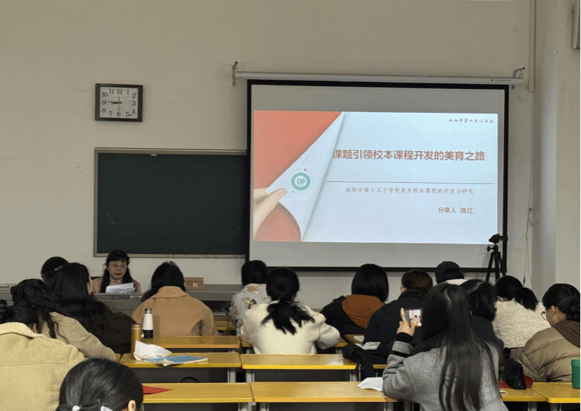 2025年11月17日上午,洛阳师范学院美术与艺术设计学院“义务教育师资薄弱环节改善暨中小学教师素质提升工程培训”进入第七天。南阳市第十五小学中小学高级教师陈红受邀在学术报告厅A111,以“彰显地方文化资源优势的课题申报”为主题,为参训教师带来教研思路与方法的实操分享。