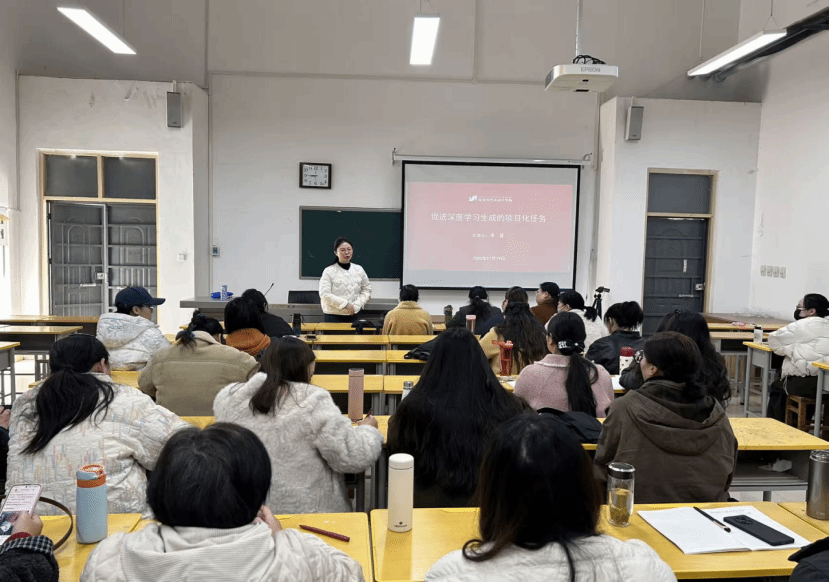 讲座中,李蕾系统拆解项目化教学设计流程,从驱动性问题设计、目标精准设定到多元成果评价,结合教学案例层层剖析关键要素。她提出的 “微项目切入、多学科融合” 实践方法,为教师搭建起理论落地的桥梁,破解了素养培育与课堂实践脱节的难题。