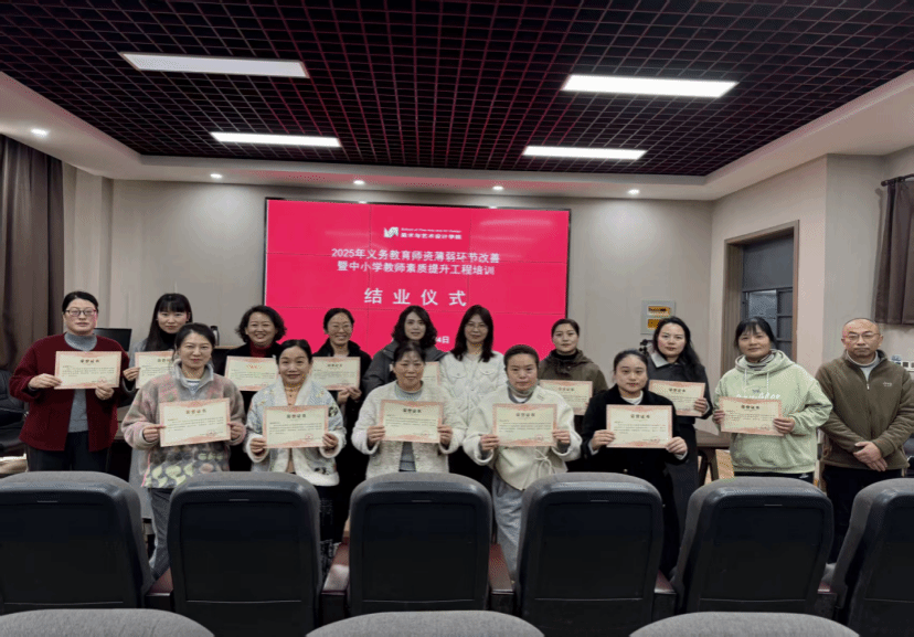2025年11月24日上午,洛阳师范学院美术与艺术设计学院2025年义务教育师资薄弱环节改善暨中小学教师素质提升工程培训结业仪式在学术报告厅A111隆重举行。学院教师朱梦迪、邓冲出席仪式,与全体参训学员共同见证培训圆满落幕。