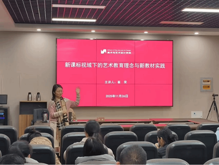 2025年11月26日下午,洛阳师范学院美术与艺术设计学院2025“国培计划”农村骨干教师能力提升培训(市级骨干教师项目)进入第七天。学术报告厅A111内座无虚席,安阳市教育局中小学教研室中小学高级教师崔荣,以“新课标视域下的艺术教育理念与新教材实践”为题,带来干货满满的专题讲座。