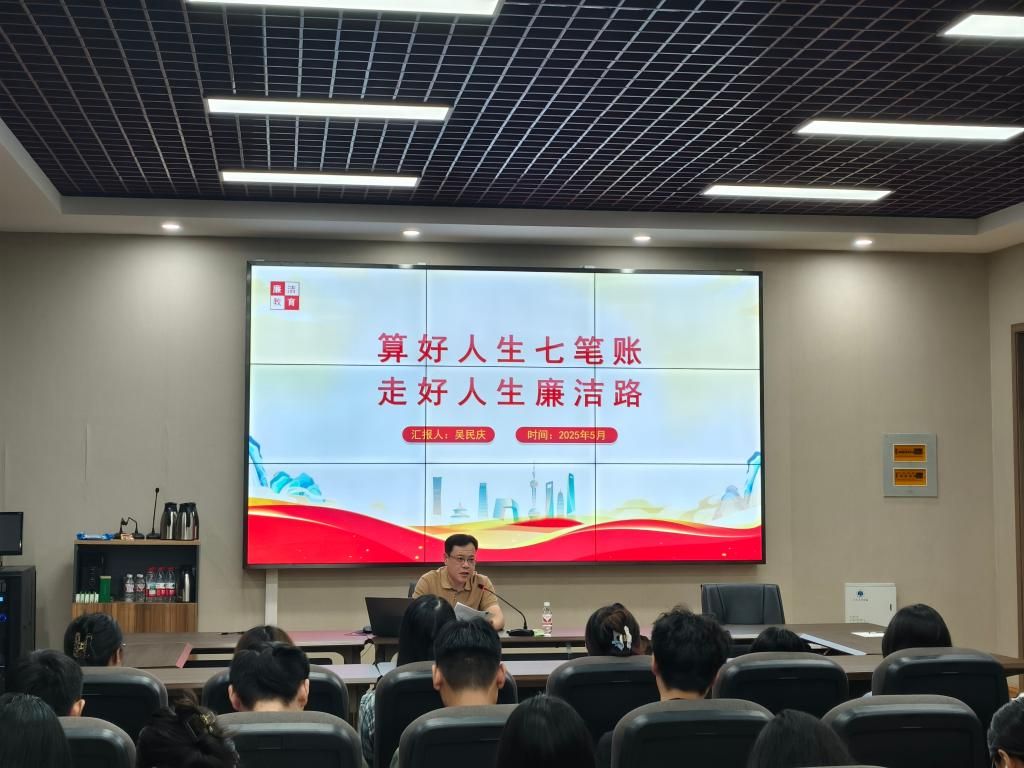 为进一步加强毕业生党员的廉洁自律意识,引导他们在未来的人生道路上坚守初心、廉洁奉公,5月29日,学院党委书记吴民庆以“算好人生七笔账 走好人生廉洁路”为题,为即将踏上新征程的毕业生党员们注入了一剂廉洁“预防针”。
