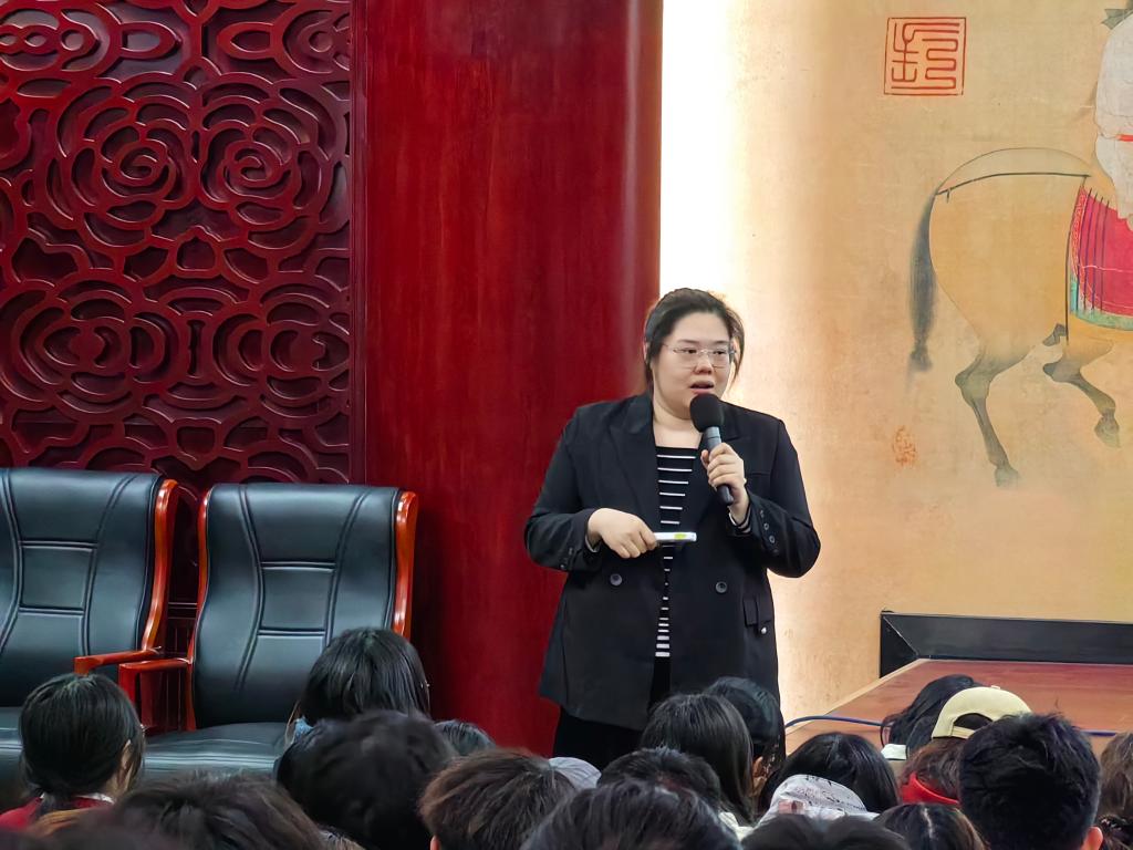 会议开始,全体学生观看学校文化宣传片,使同学们充分了解我校的校史校情,增强对学校的认同感和归属感。随后,安钰婷介绍学院相关学科专业的情况,解读培养方案,激发学生立志成才学习动力,并对课程安排、学业成绩、学业考试、日常学习等多方面进行了分析,尽快使同学们适应大学生活节奏,充满活力地开展学习和生活。