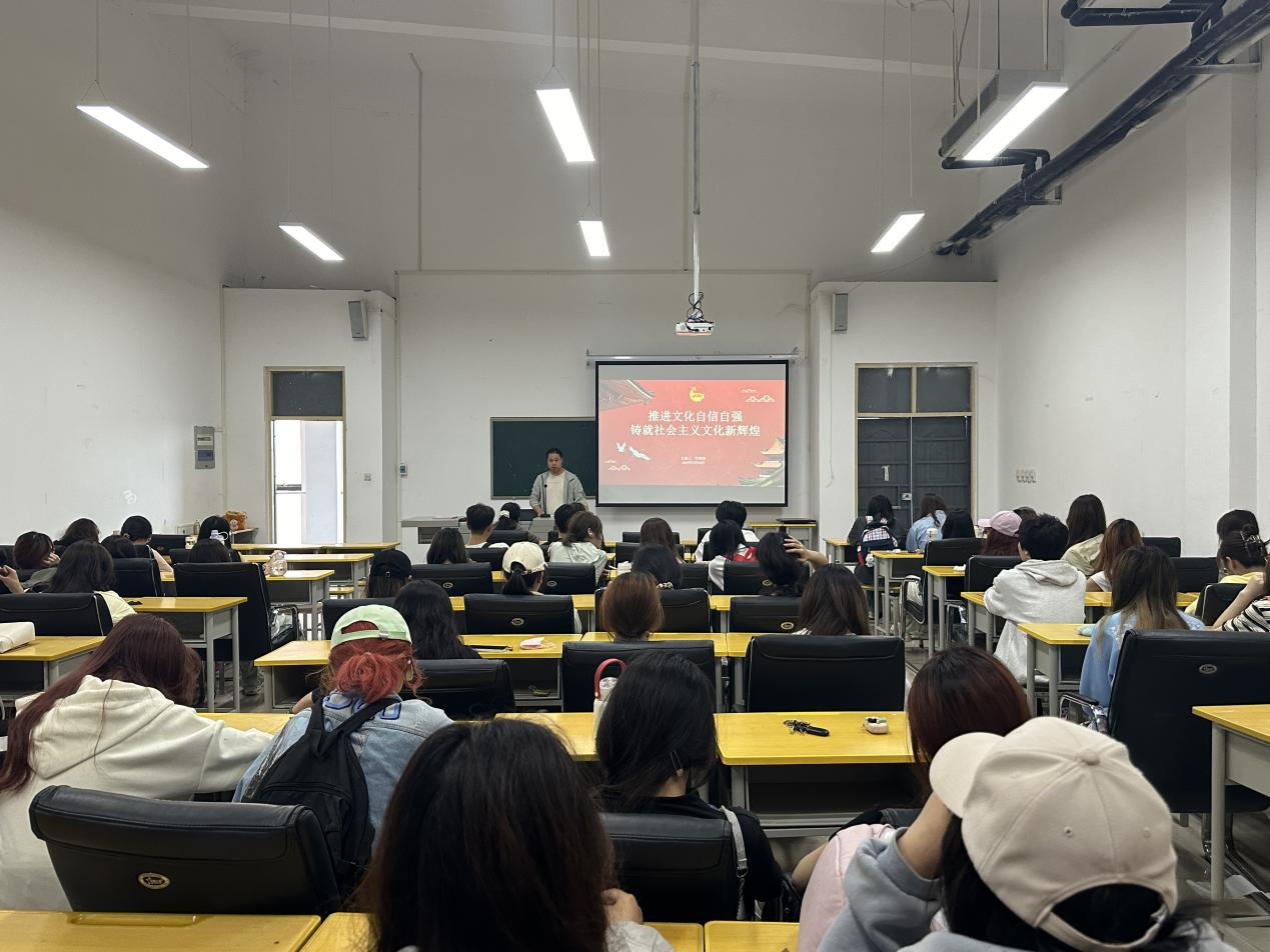 为了进一步增强我院团员青年的文化自信,引导青年大学生坚定不移听党话、跟党走。学院团委副书记宋蒙蒙于6月5日中午在学院B403开展题为“推进文化自信自强,铸就社会主义文化新辉煌”专题团课。学院学生会全体成员、青马班成员以及2022级基础美术教育工作室第1、第2团支部,2023级美术学专业第1、第7团支部全体团员青年参加。