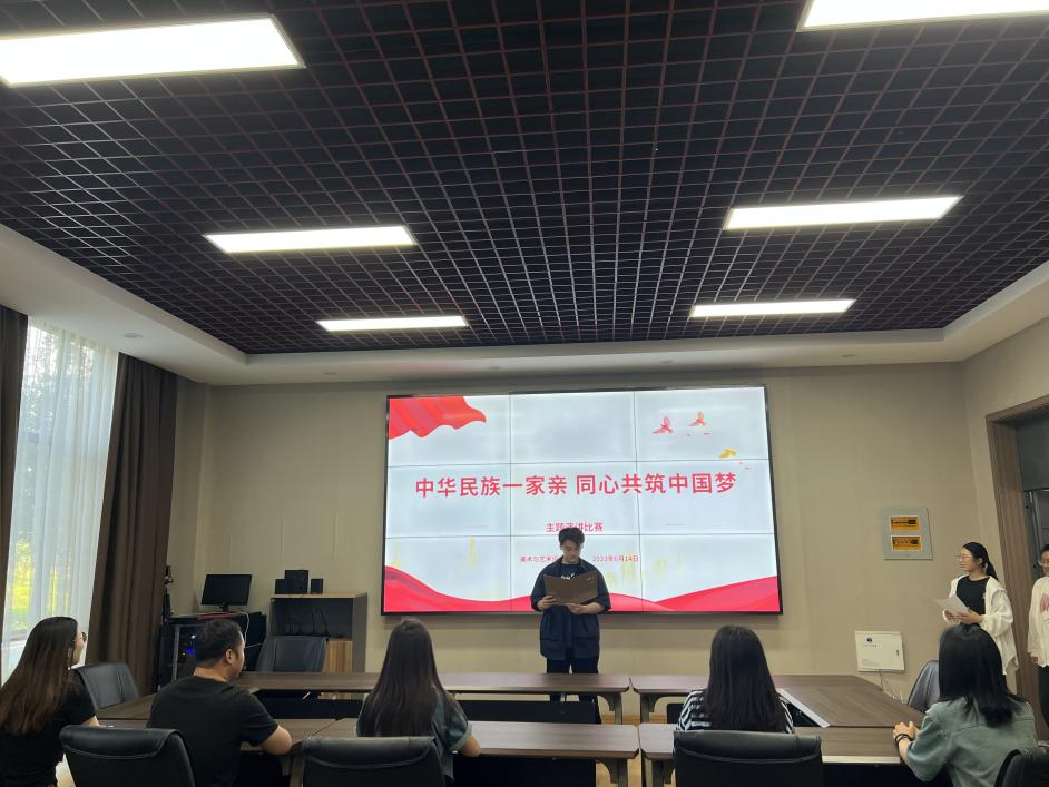 为深入贯彻落实中央民族工作会议精神,促进我院师生“铸牢中华民族共同体意识”,根据我校党委统战部相关要求,我院于2023年6月13日下午4点在鸿都楼A111举办了“中华民族一家亲 同心共筑中国梦”主题演讲比赛学院初赛,并邀请到宋蒙蒙、王洋博、蔡晓裕、王钰、娄璐璐等五位老师担任评委进行打分。