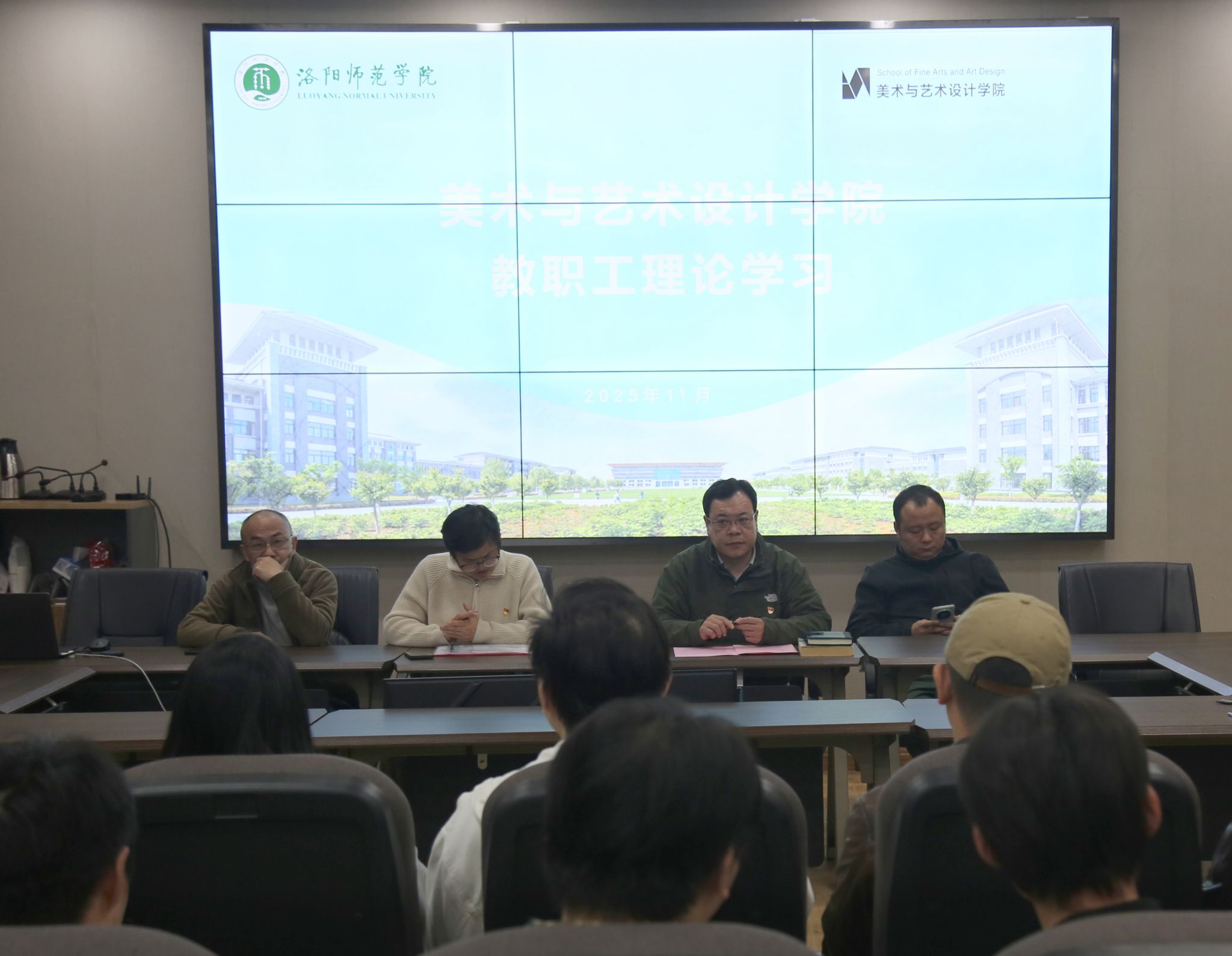 11月6日,学院于鸿都楼A111会议室召开全体教职工专题学习会议,集中学习党的二十届四中全会精神,会议由学院党委书记吴民庆主持。