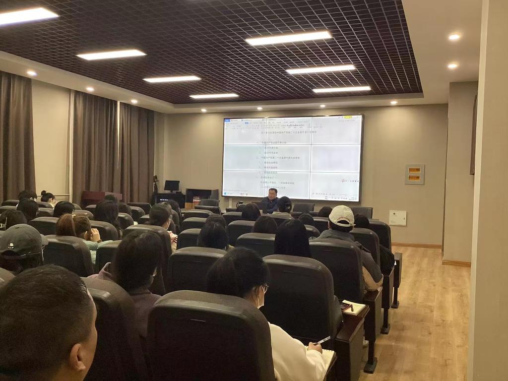 首先,郑书记以党的历次代表大会为引子,着重就党的二十大报告的新观点、新论断、新思想进行深入解读,他讲到,中国共产党第二十次全国代表大会是在全党全国各族人民在全面建设社会主义现代化国家新征程、向第二个百年奋斗目标进军的关键时刻召开的一次十分重要的大会;而党的二十大报告是我们党团结带领全国各族人民夺取新时代中国特色社会主义新胜利的政治宣言和行动纲领,是一篇光辉的马克思主义纲领性文献。接着,他就中外政党、中西制度优越性的对比,重点阐述了中国共产党的正确领导和中国特色社会主义制度的强大优越性的深刻内涵。