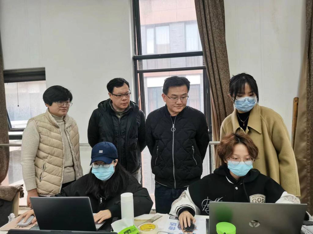 在2021级视觉传达设计绘本与插图设计工作室,指导教师梁艳向苟彬汇报了综合线描课程植入专题创作联展进展情况,该课采用项目式教学,实施“真题实做”,以提高学生应用能力为目标,让优秀传统文化焕发出新的生机与活力。