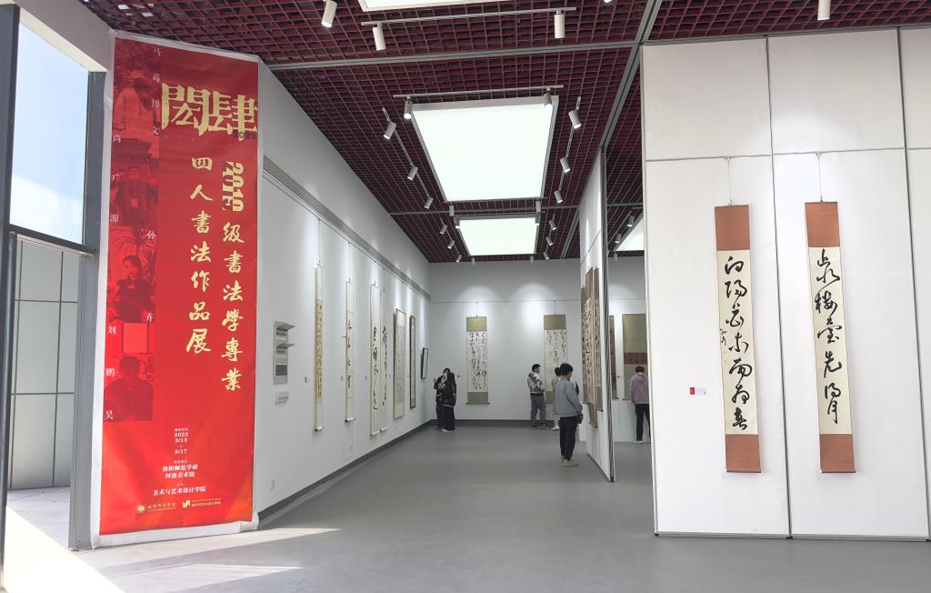 2023年3月14日上午,“闳肆——2019级书法学专业四人书法作品展”在我院河洛美术馆开幕。参展四人为我院2019级书法学专业学生马葛博文、尚广源、孙卉、刘鹏昊。学院党委书记郑红建、副院长(主持工作)苟彬及书法学专业师生参加了开幕式。开幕式由党委副书记苏小丹主持,郑红建、苟彬以及参展学生代表尚广源分别致辞和发言。