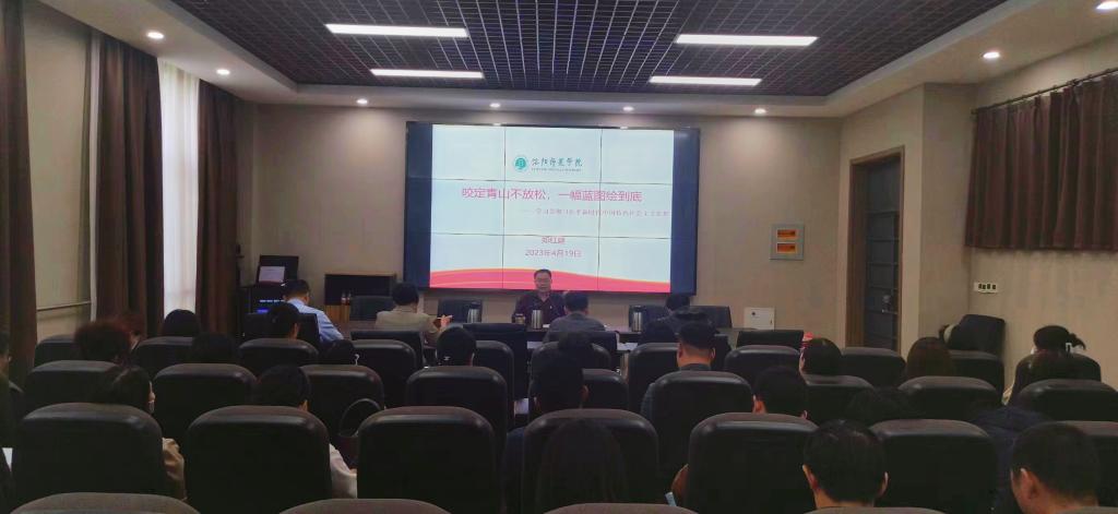 为教育引导广大党员、干部把思想和行动统一到习近平总书记重要讲话精神上来,统一到中央、省委和校党委的重大决策部署上来,深刻领悟“两个确立”的决定性意义,增强“四个意识”、坚定“四个自信”、做到“两个维护”,切实推动主题教育走深走实。2023年4月19日下午4点半,学院党委书记郑红建为全体党员作“咬定青山不放松,一幅蓝图绘到底——学习贯彻习近平新时代中国特色社会主义思想”主题讲座。