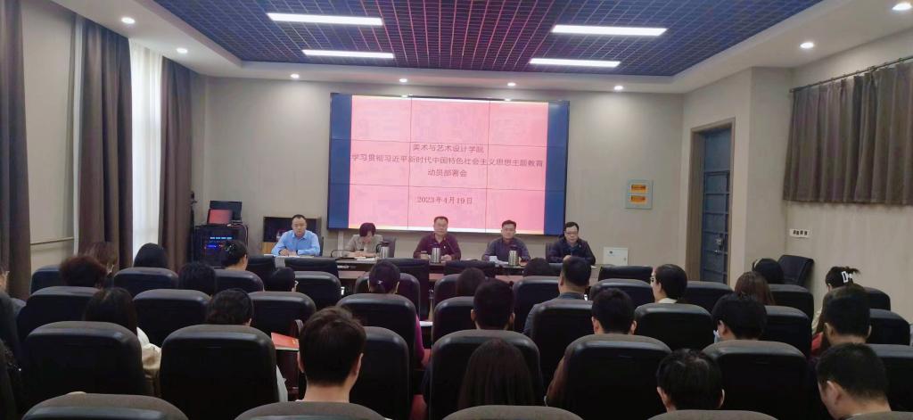 2023年4月19日,美术与艺术设计学院在A111河洛报告厅召开学习贯彻习近平新时代中国特色社会主义思想主题教育工作动员部署会,传达校党委学习贯彻习近平新时代中国特色社会主义思想主题教育工作会议精神,对学院主题教育工作进行安排部署。学院党委委员、师生党员代表共计80余人参加会议。会议由学院党委副书记苏小丹主持。