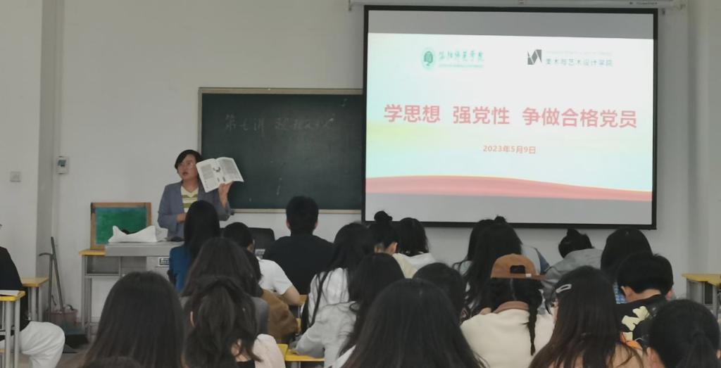 为进一步教育引导党员干部用习近平新时代中国特色社会主义思想凝心铸魂,坚定不移衷心拥护“两个确立”、忠诚践行“两个维护”,2023年5月9日下午,美术与艺术设计学院党委副书记苏小丹应邀为学生第二、第七党支部作“学思想,强党性,争做合格党员”专题党课。