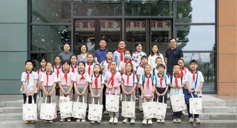 采访结束后,陈国权代表同学们对本次活动主办方表示由衷地感谢,并表示希望下一步与我院进行更深入的研学交流。最后,由少先队员为苟彬院长佩戴红领巾,并进行合影留念。