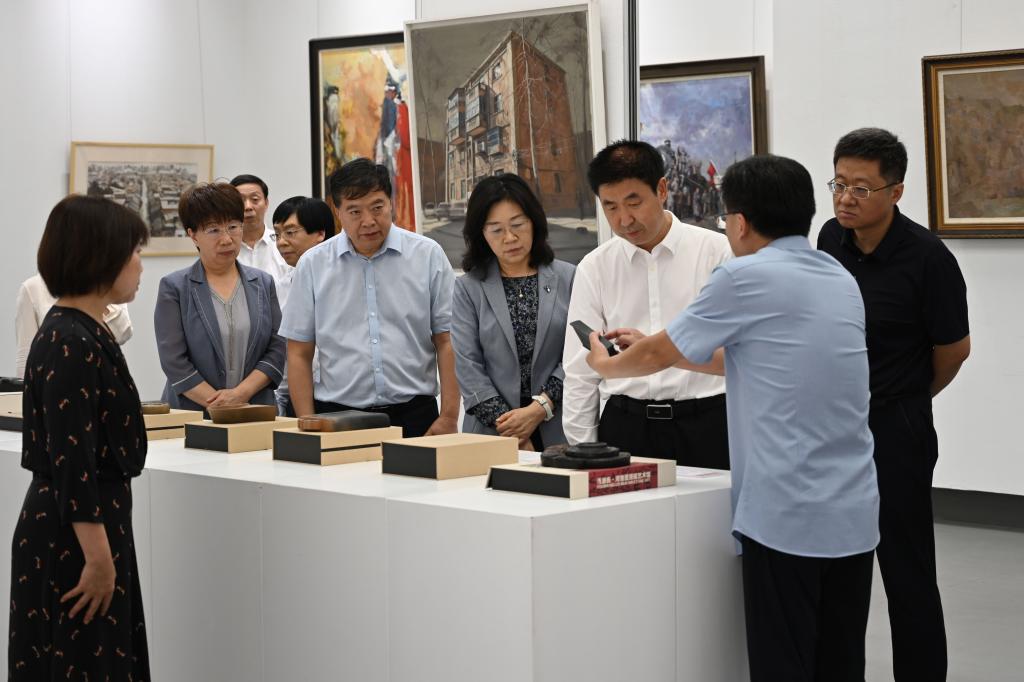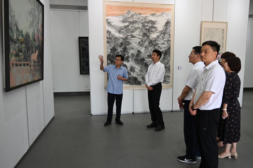 7月16日上午,河南省人民政府副省长宋争辉,副秘书长赵学东,省教育厅党组书记、厅长毛杰,省教育厅总督学刘林亚等一行莅临河洛美术馆,参观美术与艺术设计学院教师作品展。校领导郭改英、郭海明、李晓彦、赵海彦、张运礼,学院领导班子等陪同调研。