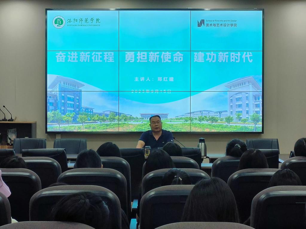 为了让同学们更加明确自身目标,坚定理想信念。我院于2023年9月14日下午在鸿都楼A111会议室为同学们开展题为“奋进新征程、勇担新使命、建功新时代”的开学第一课。本次课程由学院党委书记郑红建主讲,23级专升本学生参加。会议由党委副书记苏小丹主持。