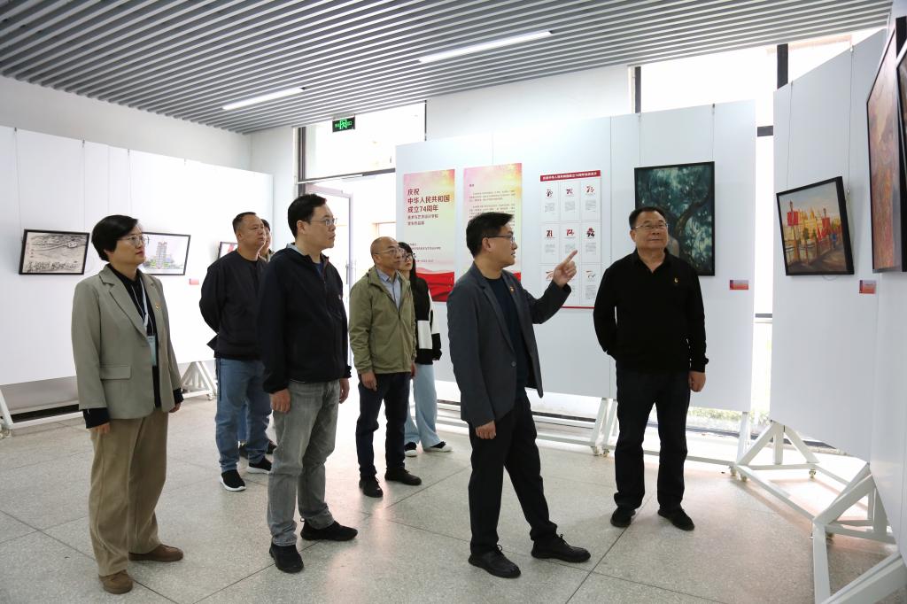 9月26日,在中华人民共和国成立74周年之际,美术与艺术设计学院在鸿都楼一楼举办“庆祝中华人民共和国成立74周年美术与艺术设计学院学生作品展”,美院学子以艺术的形式,回顾历史,展望未来,表达对祖国的热爱和敬意。学院党委书记郑红建,院长苟彬,党委副书记苏小丹,副院长吴民庆、贺朝无、张瑞以及师生代表参观了展览。