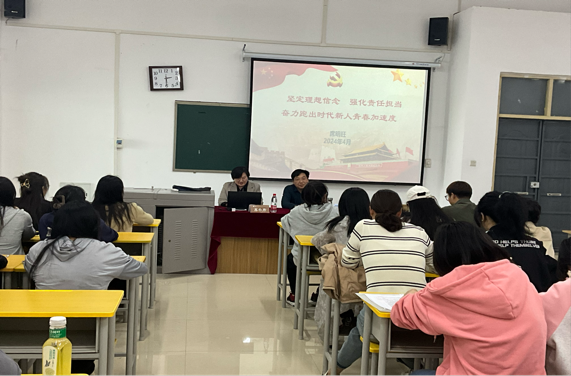 4月12日下午,我院邀请物理与电子信息学院党委书记席明旺为入党积极分子作“坚定理想信念 强化责任担当——奋力跑出时代新人青春加速度”主题党课。党课由党委副书记苏小丹主持。