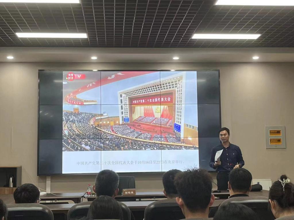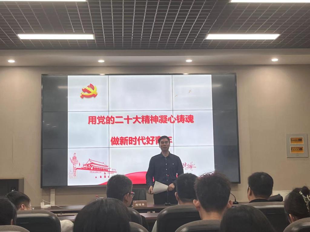 郎晓林以近期社会热点事件为索引,深刻阐释了学习贯彻党的二十大精神的重要性。针对青年大学生的使命与担当,他向同学们提出以下三点要求:一是要勇担使命,不负青春,坚定不移听党话、跟党走,坚定信念,行稳致远。二是要珍惜时光、迎接挑战,保持定力、持续自我提升。三是要瞄定目标、善作善成,将个人信念与国家发展、社会进步结合起来,学思践悟、知行合一,在拼搏奋斗中实现人生的价值与意义。