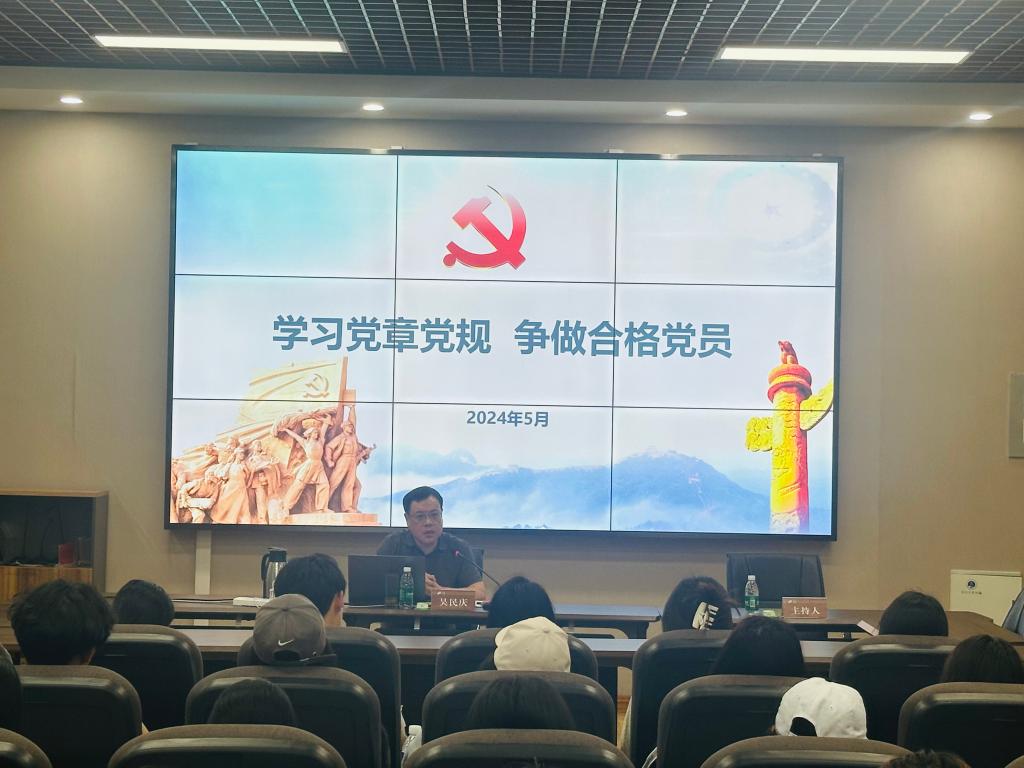5月10日下午,学院党委书记吴民庆在美术楼A111会议室为学院2024年上半年入党积极分子作“学习党章党规 争做合格党员”主题党课。