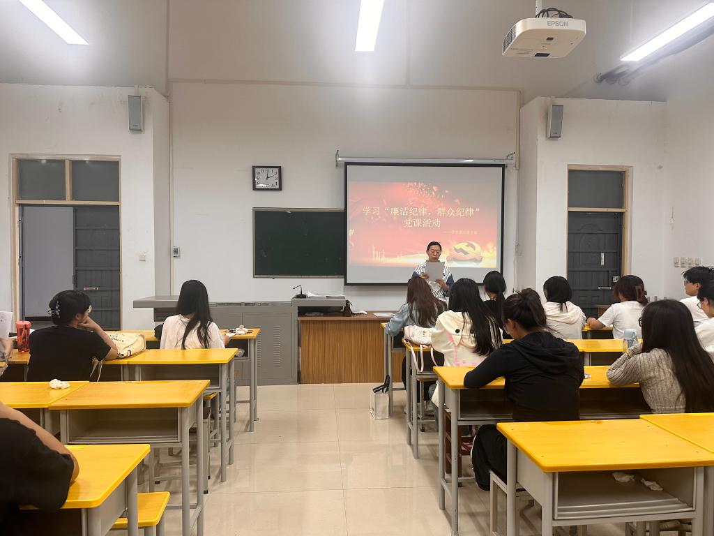 其中,学生第一党支部书记张瑞给支部党员作了《坚守党的政治纪律、组织纪律,砥砺党员政治品格》党课,要求党员时刻提醒自己守住底线、不越红线。学生第六党支部书记高颖作了《廉洁奉公,永葆共产党员的政治本色》党课,重点讲解了党的廉洁纪律、群众纪律。学生第七党支部书记高丽作了《坚守党的纪律,争做合格党员》党课,通过案例解读警示党员时刻自重、自省、自警、自励,锤炼过硬作风,勇于担当作为。