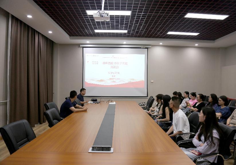 为深入贯彻全国高校思想政治工作会议、全国教育大会精神,落实立德树人根本任务要求,加强和改进新形势下思想政治工作,5月21日,我院在A109学术报告厅召开课程思政“手拉手”共建座谈会,邀请马克思主义学院相关教师共同探讨构建艺术与思政深度融合的教育体系。