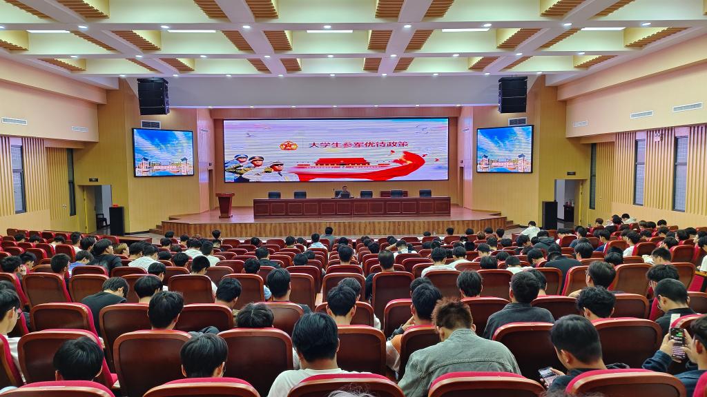 其次,王焱以“参军入伍 献身国防 保家卫国”为主题开展国防安全教育暨征兵入伍政策宣讲会,为新生们讲述了大学生入伍的相关条件及相关政策优势。他鼓励同学们要加强国防观念和厚植爱国主义精神,在军营中锻炼和塑造自我。