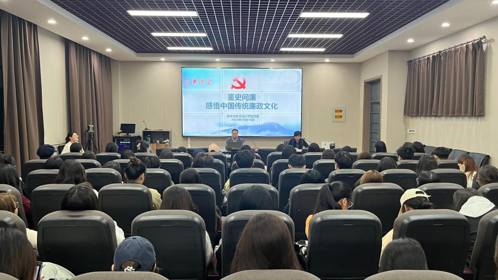 为了弘扬新时代廉洁文化,营造风清气正的氛围,10月16日,美术与艺术设计学院、鸿都书院2号学生社区联合举办的“青廉讲堂”第二期在美术与艺术设计学院A111报告厅开讲。本期“青廉讲堂”特邀历史文化学院教授吴涛作题为《鉴史问廉—感悟中国传统廉政文化》的讲座。学院党委副书记苏小丹、育人导师李艳芳及学生代表近100人参加讲座。