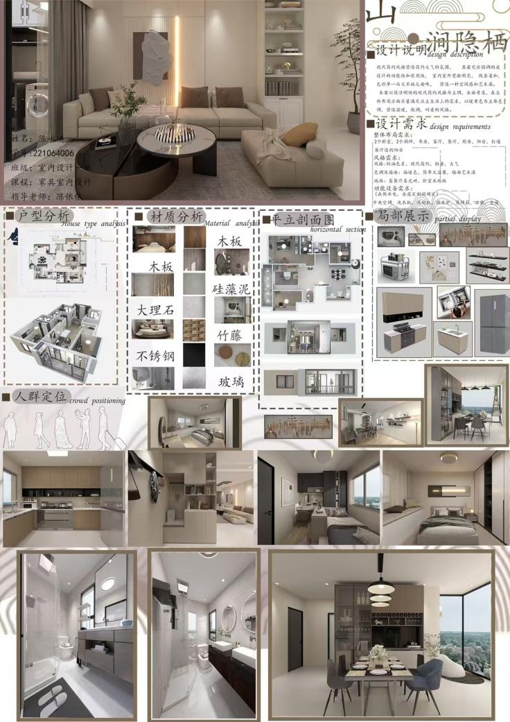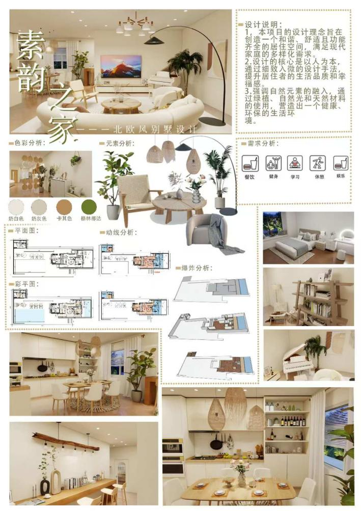 每一件作品都蕴含着设计师对生活的独特理解和感悟,通过巧妙的布局、合理的空间划分、精致的装饰元素以及和谐的色彩搭配,营造出一种既舒适又富有美感的居住环境。同时,作品配以详细的设计说明和效果图,让观众能够更直观地理解设计师的意图和创作过程。师生们在参观过程中,不时驻足欣赏,交流心得,对学生们的创意和才华给予了高度评价。