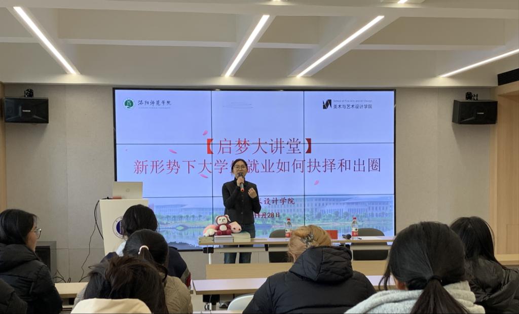 11月28日,由我校招生就业处主办、美术与艺术设计学院承办的启梦大讲堂系列讲座之“新形势下大学生就业如何抉择和出圈”在开阳书院二号院二楼多媒体教室举行,此次讲座邀请了新东方在线金牌考研规划师贺老师担任主讲人。
