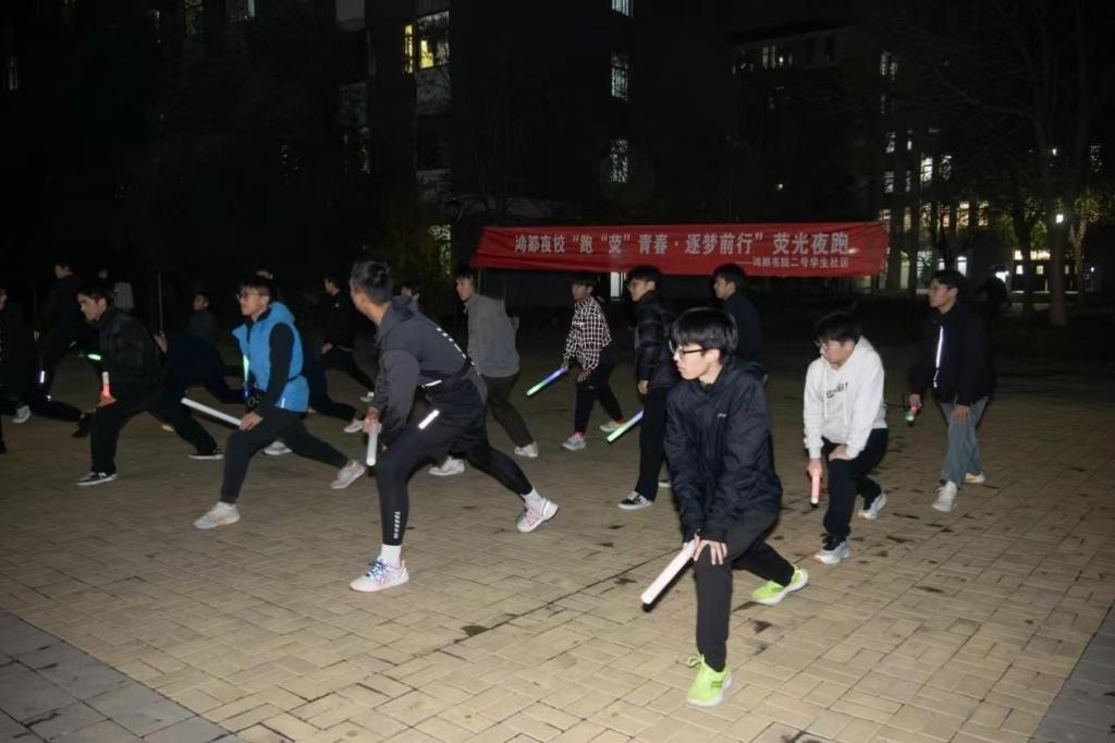 为营造浓厚的体育锻炼氛围,增强书院学生的体质健康,11月25日晚,鸿都书院2号学生社区学生会举办了“跑‘荧’青春·逐梦前行”校园荧光夜跑活动。本次活动成功吸引了来自书院各年级的三十余名中长跑爱好者和退伍大学生参与。