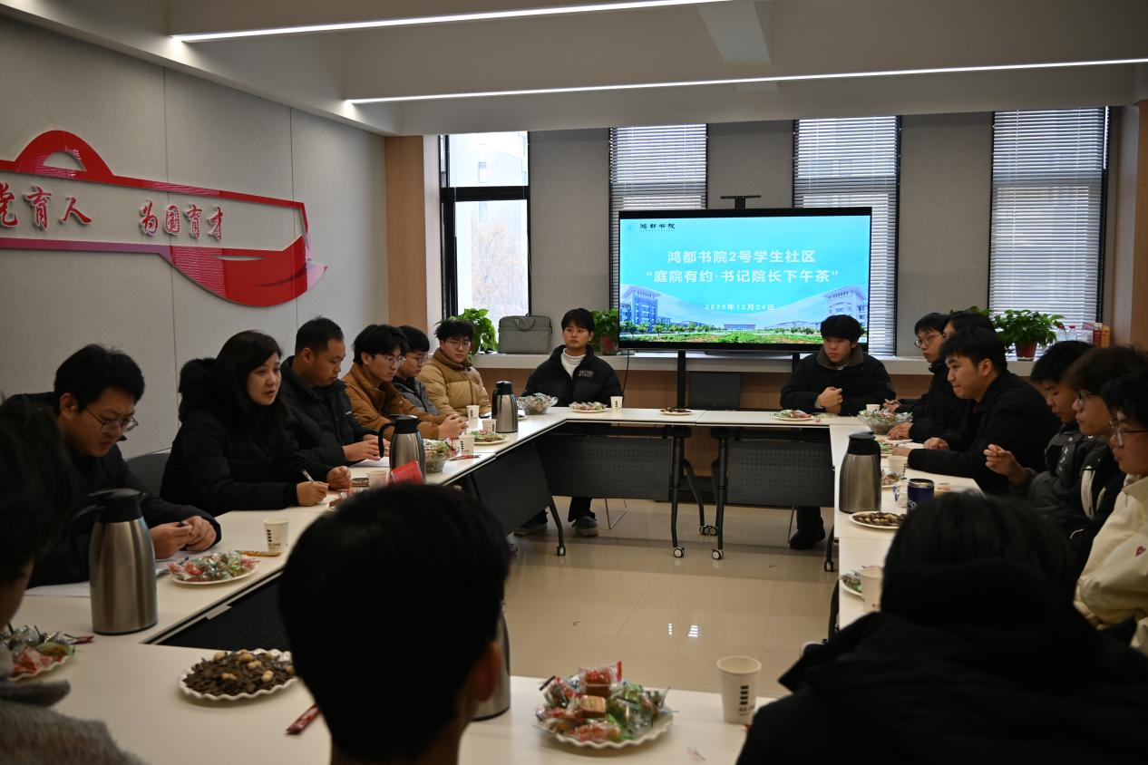 12月24日,鸿都书院2号学生社区举办“庭院有约·书记院长下午茶”第三期座谈会,书院党委书记董欢欢,团委书记宋蒙蒙,社区文化中心副主任毕于磊以及书院2022级学生代表参加座谈。此次座谈会旨在进一步加强书院与学生之间的沟通交流,深入了解学生需求,助力学生成长成才。