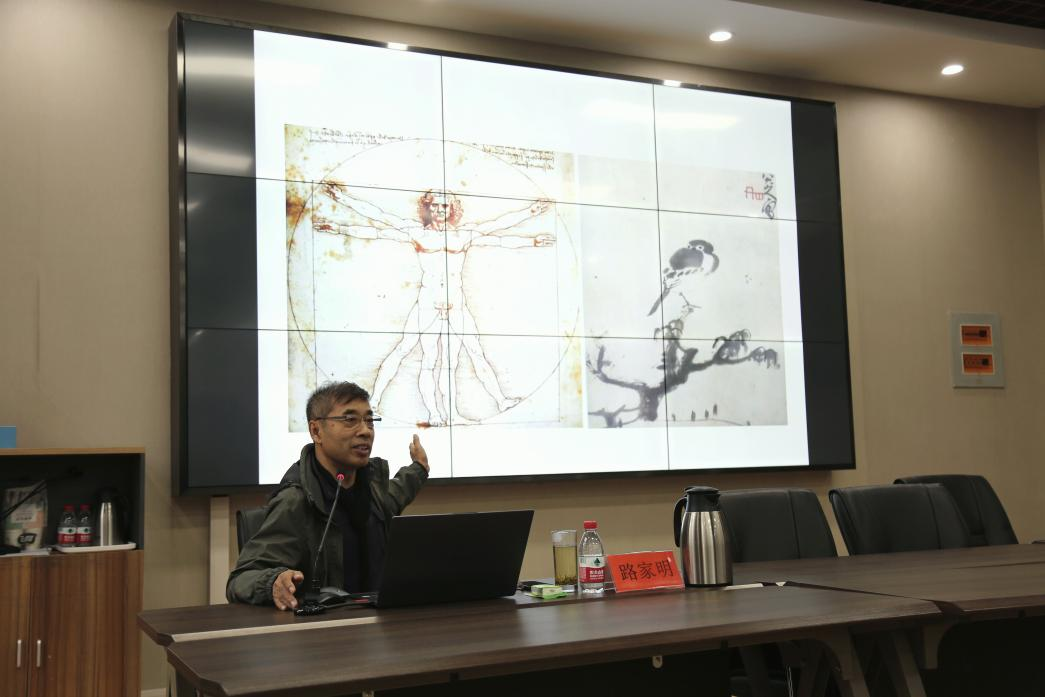 讲座初始,路教授以教学经验为起点,讲述当下学院基础造型教学的发展趋势,并以各个高校基础教学的作品示例展示美术、设计两大类基础教学的不同途径。随后,路家明教授讲述了他在俄罗斯列宾美术学院的学习生涯,他谈到大学阶段的学习方法和方向,强调做好实践采风在未来艺术创作的重要性,并在此基础上寻找创作的源泉。艺术来源于生活,还应高于生活,画家既要通过作品表现出民族精神和时代感,也要引发观众更深层次的思考。讲座最后,路教授为大家展示其丰富的画作,并同师生进行了互动。