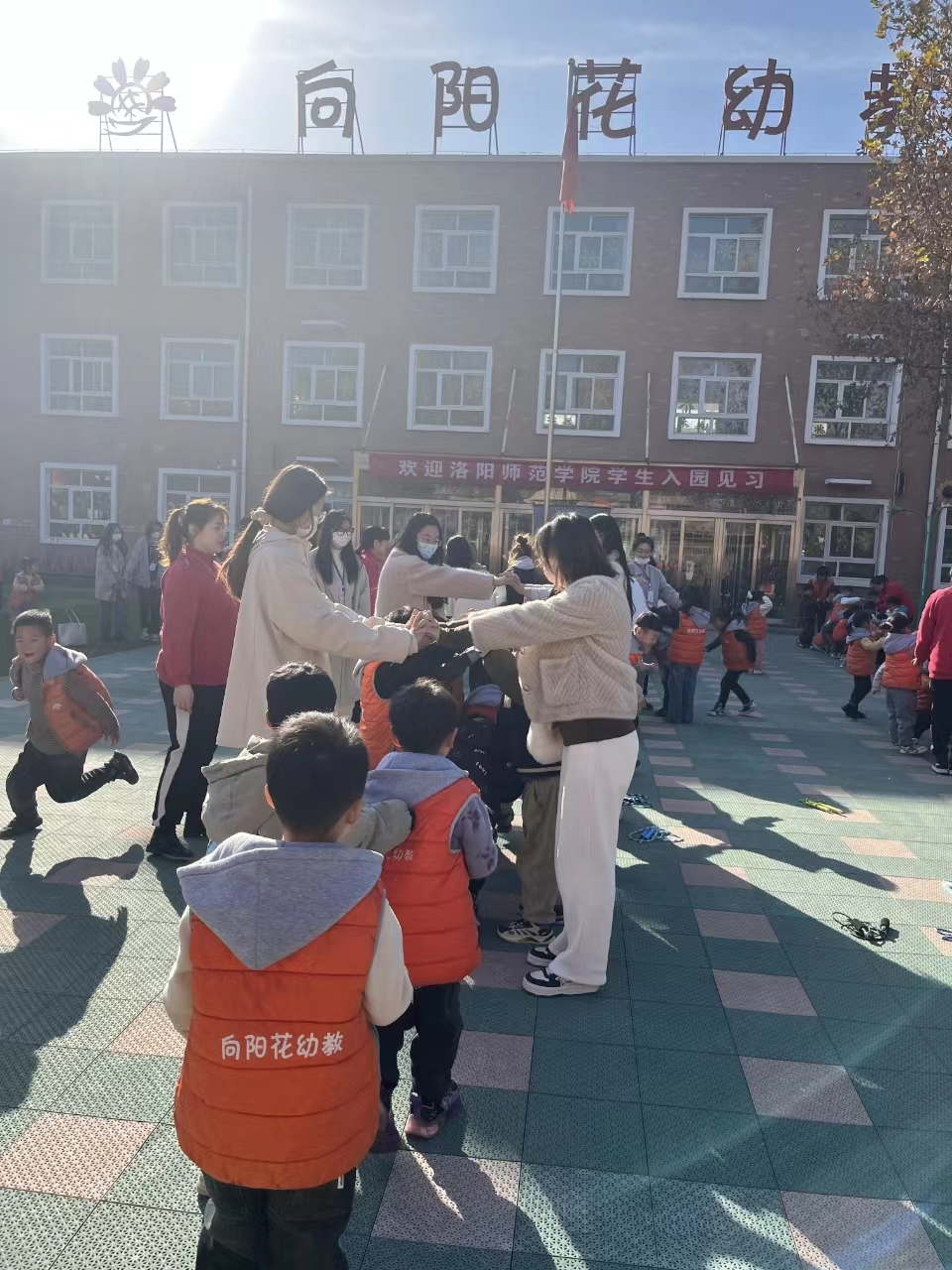 教育见习是学前教育专业人才培养中重要的综合实践课程,是实践教学的重要组成部分,是提高学生实践能力和培养优质学前教育师资的重要环节。依托《幼儿园组织与管理》(互认课程《现代质量管理实践》)课程教学需要,12月8日,我院2021级学前教育专业中外合作办学1、2班学生在张一楠、王姣莉教师的带领下,前往洛阳市偃师区向阳花幼儿园开展教育见习活动。