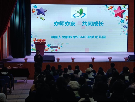 学院副院长靳君代表我院对中国人民解放军96606部队幼儿园各位老师到来表示热烈欢迎,对幼儿园长期以来对我院教育实习、见习和研习工作的支持表示了感谢。讲座期间,幼儿园的优秀教师围绕着“亦师亦友,共同成长”主题展开讲述,她们从职业自尊、工作经验、真实案例、师幼互动等方面进行分析讲解,李晴怡代表新手教师为学生们分享工作上的趣事,进一步提高学生对幼儿教师这份职业的兴趣;任彬洁教师代表熟手教师为学生讲解了成为专业幼儿教师的要求以及幼儿教师的日常工作,让学生们对幼儿教师有了更加深入的了解;董晓莹老师代表骨干教师讲解了16年的幼教故事,用真实的案例呈现了幼儿教师的专业成长;安静老师代表幼儿园管理者,用鲜活的成长故事介绍了学院历届实习学生、毕业生就业的情况,并深入解读了幼儿园对新教师的培养和培训;最后,郭文娟园长以“幼儿园教师职业认知与师德要求”为题进行了专题讲座,从“这个职业我们拥有了什么”和“这个职业带给了我们什么”两个角度,为学生进行了深入浅出的讲解,让学生们充分认识到幼儿教师这一职业的价值和发展空间。