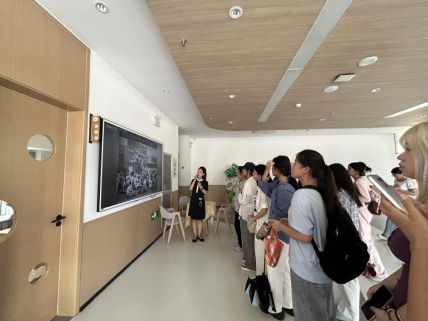 洛阳市实验幼儿园绿都园区保教主任李佳静带领同学们参观了园内环境,参观了“青青草原”“阿基米德水系”“音乐体验区”“种植园地”,以及小书房、小厨房、美工室等。通过参观,同学们认识到环境作为儿童的第三任教师,其创设的科学性、互动性能够充分激发幼儿探索的兴趣。
