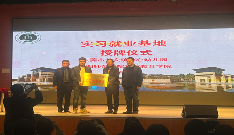 讲座伊始,宋小宁从“校园风采”、“我的大学”两方面进行讲述,表明了热爱和实践的重要性。接着,她对幼儿园环境、幼儿活动、幼儿园介绍、成长与收获等四个方面进行介绍,并鼓励毕业生勇于实践、敢于尝试。讲座最后,靳君为毕业生进行前景分析,提出就业建议,希望毕业生拥抱青春,不言放弃,积极主动就业。讲座结束后,学院与东莞市长安镇中心幼儿园进行了实习就业基地签约及授牌仪式。