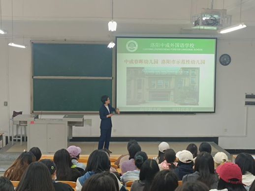 招聘会上,招聘单位负责人王老师为现场学生详细介绍了洛阳中成教育集团的构成和机制,她从多个方面介绍了学校的办学机制和集团特色教师培训,展现了完善的课程系统和优秀的教师团队。针对学生们所关注的薪资待遇问题,王老师代表园方郑重承诺,会以公平公正的薪资待遇留下优秀的教育人才。同时,她为大家展示了春晖幼儿园在集团文化和园训背景下的园所文化,诚挚邀请毕业生加入洛阳中成幼教中心。