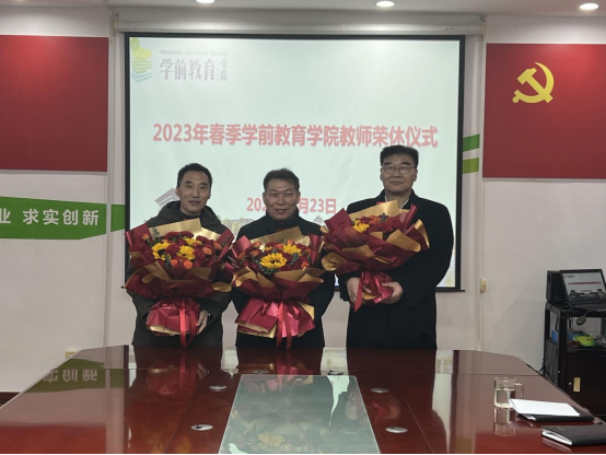 学院党委书记褚卫东发表致辞,感谢张西方、张欣、张金峰三位荣休教师对学前教育学院建院、全面发展以及高等教育事业的无私付出,祝福大家退休后生活丰富精彩。张运礼为三位荣休教师颁发荣誉证书和纪念品。“学校各项事业的发展和学院取得的各方面成绩,都离不开荣休教职工在职期间的辛勤耕耘和无私奉献。”他对三位同志光荣退休表示祝贺,恳请大家继续关心学校和学院的发展,常回家看看,继续在学科建设、学术研究、帮助指导青年教师等方面发光发热,继续为学校人才培养贡献力量。三位教师深情回顾了在学校和学院教书育人的点点滴滴,分享了工作经历和经验,畅谈了学院发展的美好前景,表达了对学校和学院事业发展的美好祝福和不舍之情。青年教师们纷纷向各位荣休老师表达了崇敬、感激和祝福之情,表示要传承好他们的信念、坚韧、担当和高尚师德,时刻牢记育人使命,赓续薪火传承,踔厉奋发新征程。