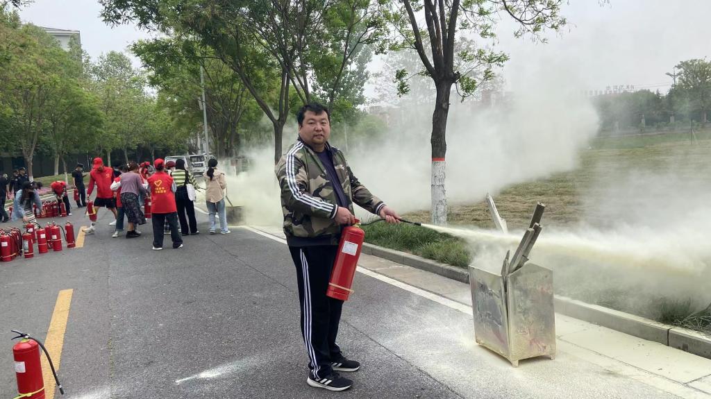 首先,伊滨区公安消防大队队员详细讲解了使用灭火器的方法和注意事项,随后演示了如何使用灭火器扑灭初期火灾的使用方法,按照灭火器“提、拔、握、压”的正确使用步骤,指导师生实践掌握紧急安全灭火的正确方式。