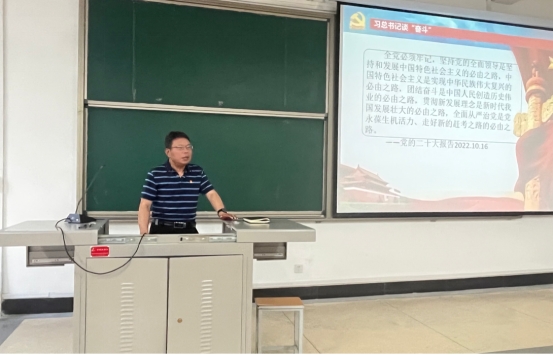 6月1日,我院党委书记褚卫东在A7-115以“奋斗是中国共产党人永不褪色的主题”为题,为学生上主题教育专题党课。