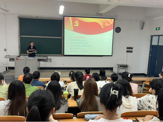马锦华以“不忘初心、牢记使命”为主题,结合党的二十大报告中关于教育的重要论述从“坚持教育优先发展办好人民满意的教育”“加快建设高质量教育体系”等五个方面内容进行讲解。她强调,早期教育对国家和社会具有重要意义和经济价值,希望同学们树立为祖国、为幼教事业奋斗一生的理想信念,做道德高尚的学前教育专业的学生,为取得优秀成绩而努力学习。