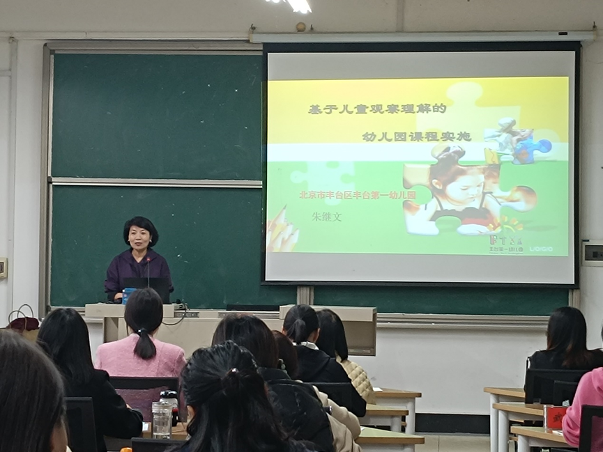 11月4日下午,北京市丰台区丰台第一幼儿园园长朱继文于我院A7-202开展《基于儿童观察理解的幼儿园课程实施》的主题讲座,伊川县骨干教师积极参与。