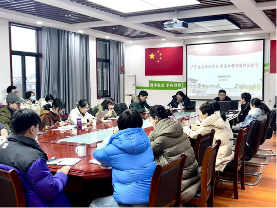 12月14日下午,我院在A7-504会议室召开了师德师风专题教育会议,认真学习贯彻习近平总书记关于教育的重要论述和指示批示精神,贯彻落实上级部门对于师德师风建设的决策部署。学院党委书记褚卫东作“严字当头实处发力,全面加强师德师风建设”主题教育,全体教职工参加。