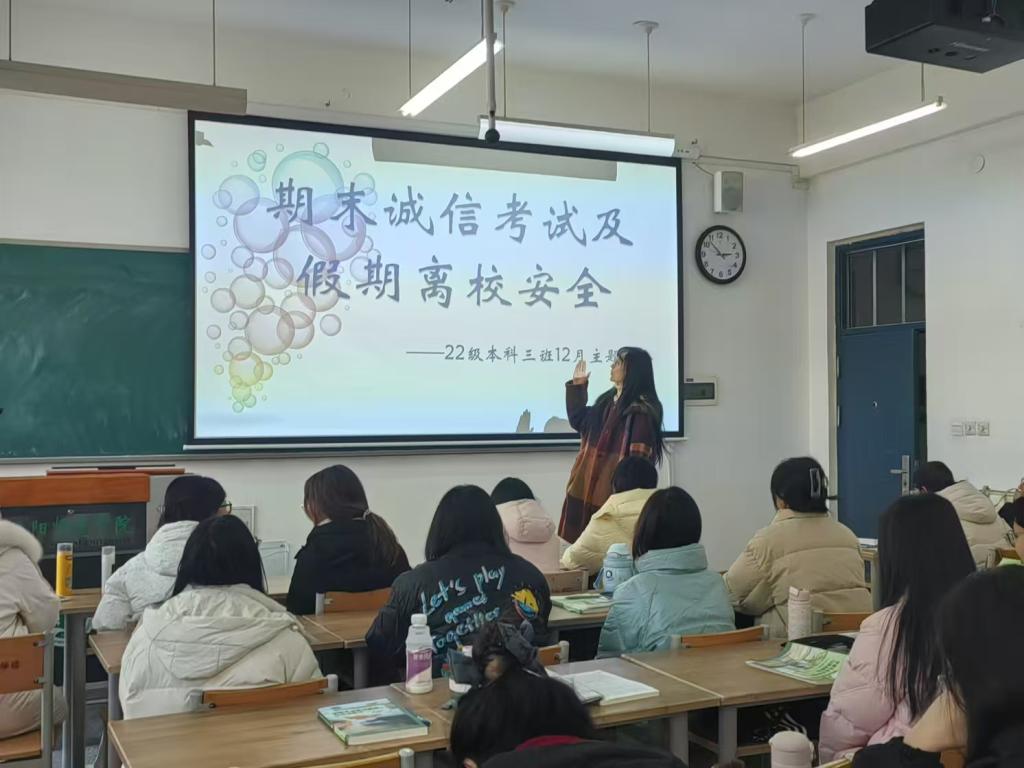 12月16-20日,我院全体班主任、辅导员深入班级召开诚信考试和寒假安全教育主题班会,学院班子成员深入所联系的班级进行了宣讲。