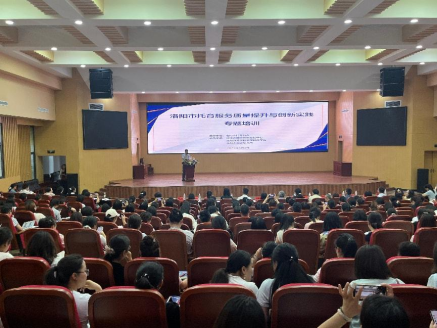 为全面提升洛阳市托育服务专业化水平,推动托育服务体系建设,6月8日,由洛阳市托育协会和洛阳市城乡一体化示范区卫健医保局主办,洛阳师范学院学前教育学院、洛阳市实验幼儿园和河南省普惠托育发展中心承办的“洛阳市托育服务质量提升与创新实践专题培训”洛阳师范学院G1-112举行。洛阳市托育协会,城乡一体化示范区卫健医保局、教体局相关负责人,洛阳师范学院全体教师和硕士研究生,洛阳市及各县(区)幼儿园园长、托育机构负责人及骨干教师等400余人参加。
