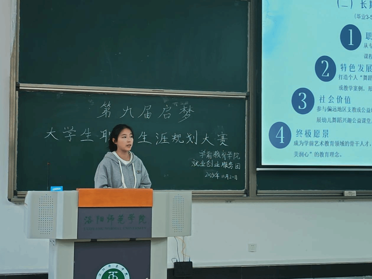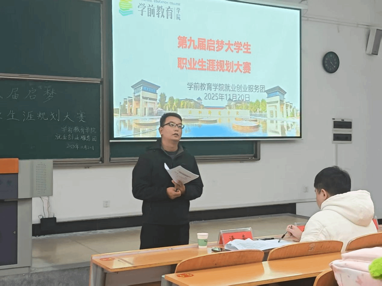 11月20日下午,学前教育学院第九届启梦大学生职业生涯规划大赛决赛在A7-114教室举办。本次大赛邀请招生就业处张俊、马克思主义学院赵鑫润、问礼书院二号学生社区秦逸伦担任评委,各年级学生代表现场观摩。