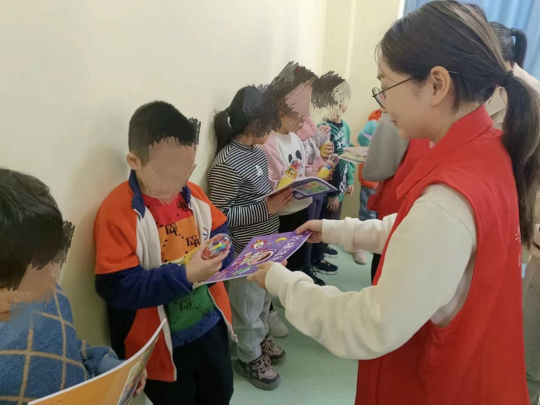 金雨点启智中心院长焦岩对胡月一行的到来表示热烈欢迎,并且详细介绍了中心的情况。胡月、焦洋凯等深入了解了中心特殊儿童的学习和生活状况。随后,胡月一行人将画笔、绘本等学习用具发放给孩子们,并与孩子们交流互动。孩子们用歌声向志愿者表达诚挚的谢意。
