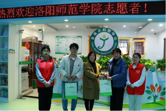 为大力弘扬雷锋精神,传扬中华民族美德,呼吁更多爱心人士关注特殊儿童群体,3月8日,我院教师胡月、焦洋凯及“蓓蕾蓝丝带”志愿者学生携带画笔、绘本等前往金雨点启智中心慰问。