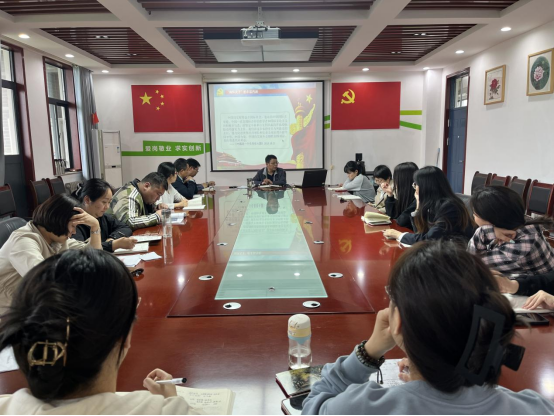 5月10日,在学前教育学院党委开展学习贯彻习近平新时代中国特色社会主义思想主题教育第一期读书班期间,学院党委书记褚卫东在A7-504会议室为师生党员上专题党课。